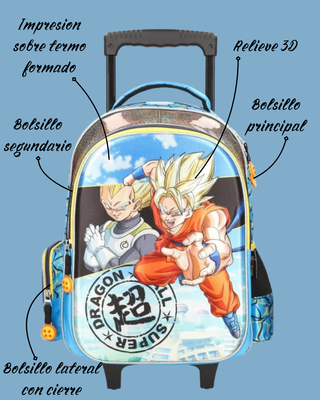 Mochila Escolar Dragon Ball Super con ruedas